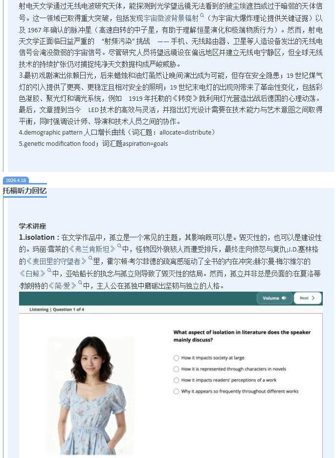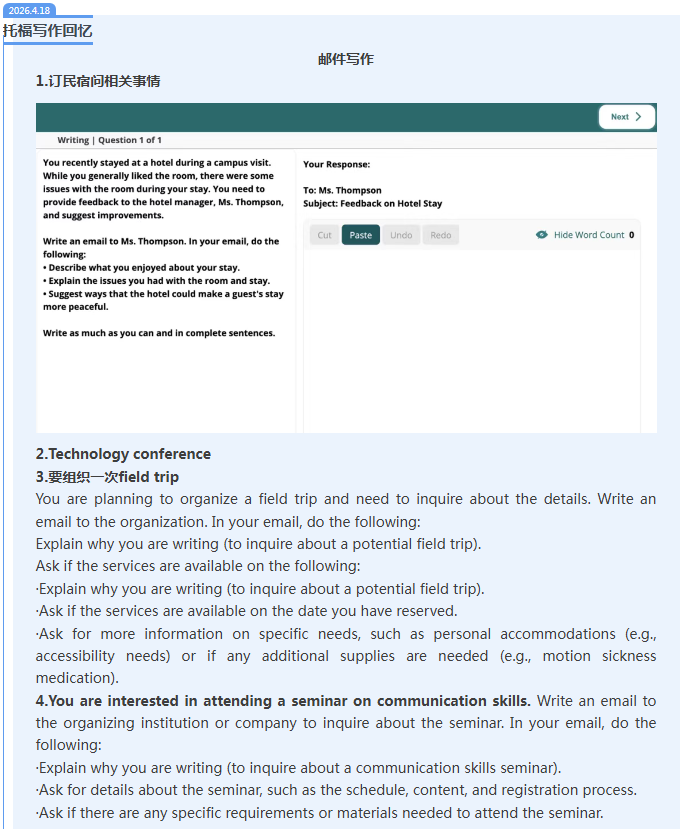 常州新航道 > 托福机经 > 新航道2026年4月18日托福考试机经